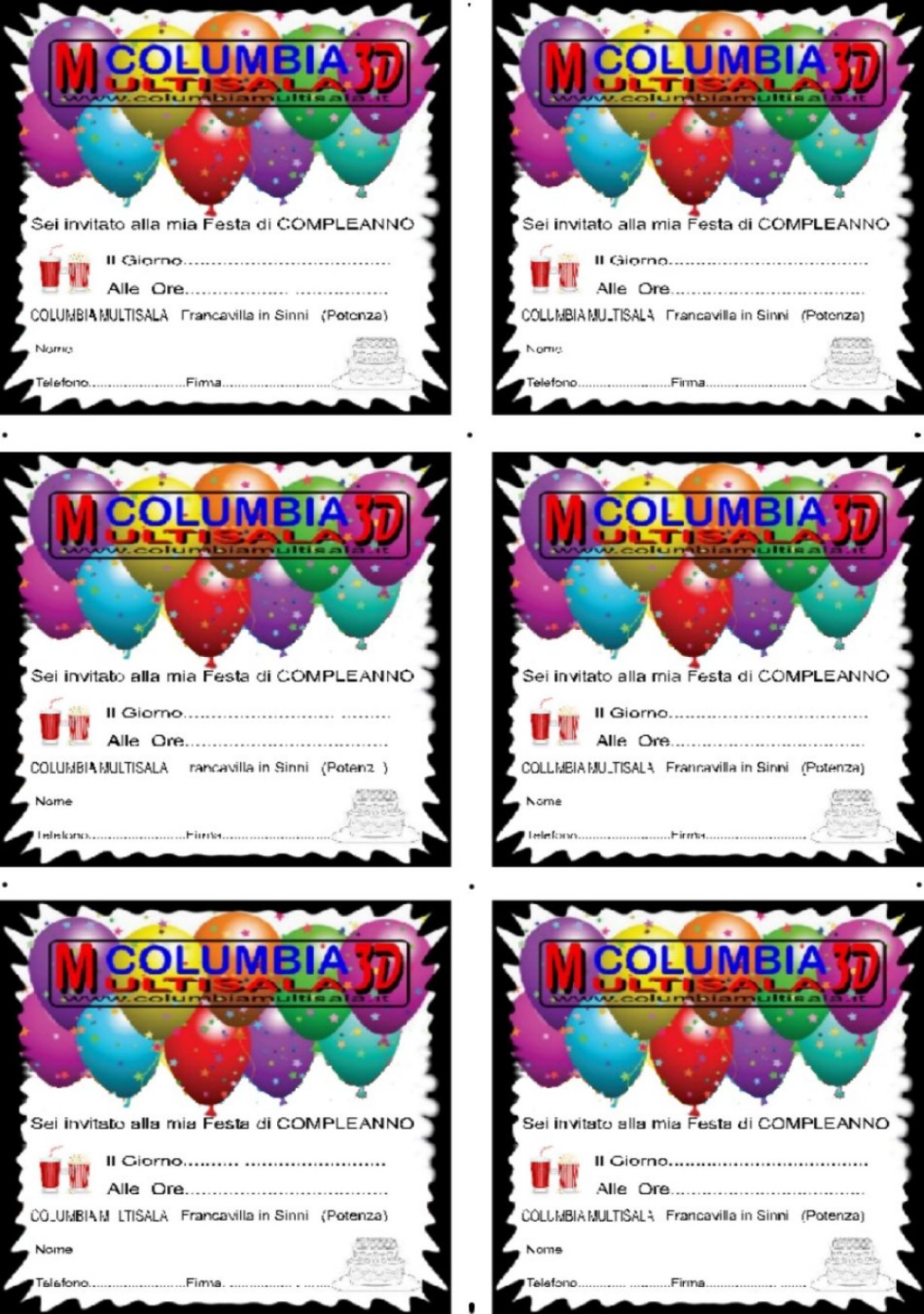 NB: PRIMA DI ACQUISTARE I BIGLIETTI VA STABILITO LA DATA DEL COMPLEANNO